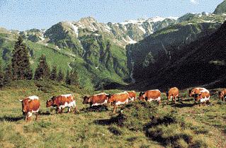 Alpine pasture with Pinzgauer-cows